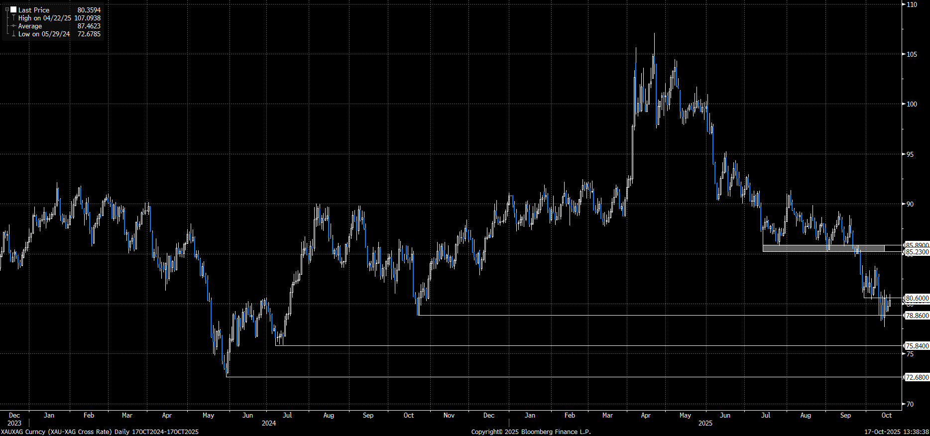 Altın/Gümüş rasyosu, 7 Nisan’dan bu yana gümüş lehine hareketini koruyor. 80,60 seviyesinin altında kalındığı sürece aşağı yönlü görünümün devam etmesi beklenebilir. Rasyonun 78,86 seviyesinin altına sarkması halinde ise 75,85 seviyesi gündeme gelebilir. Alternatif senaryoda, altının göreceli olarak güçlü kalması ve 80,60 seviyesinin aşılması durumunda 83,85 seviyesi izlenebilir.