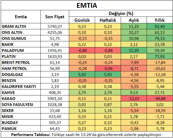 Gümüş tarafında kazanımlar 1%’e dayandı. Bakır, Çin’de beklentinin sınırlı şekilde üzerinde kalan büyüme verisi sonrası 0,3% kadar kazanım sağladı.