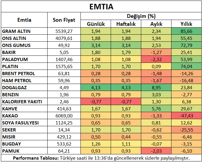 Gümüş tarafında faiz indirim tahminleri ve ekonomiye yönelik risklerle birlikte kazanım 3%’ün üzerine çıkmış durumda.