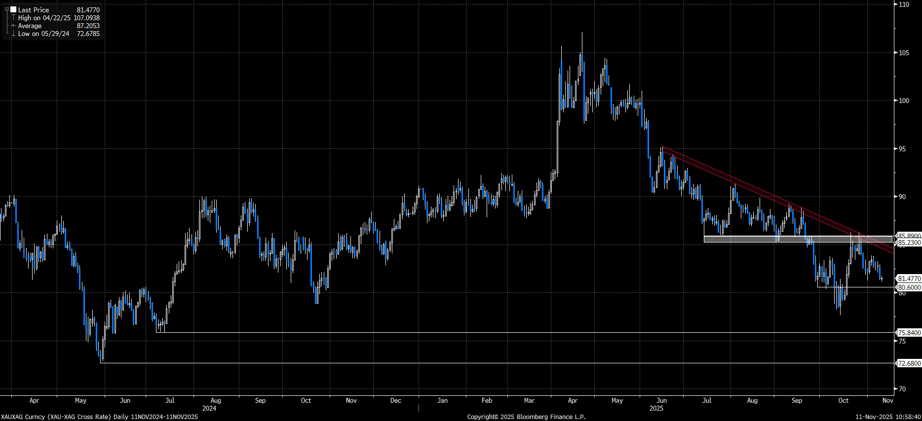 Geri çekilmenin sonlanmış olabileceğini düşündüğümüz altın ve gümüşte pozitif hava gözlemliyoruz. Gümüş fiyatlarının bu toparlanma sürecinde altına göre daha güçlü bir görünüm sergilemesi, rasyoda aşağı yönlü baskıyı artırdı. 85,23–85,89 bölgesinin altında kalındığı sürece gümüşün altına karşı üstünlüğünü koruması beklenebilir. Bu durumda 75,84 seviyesine doğru geri çekilme potansiyeli gündemde. Öte yandan, 85,23–85,89 bölgesinin aşılması, nisan ayından bu yana devam eden gümüş lehine görünümün zayıfladığına işaret edebilir.