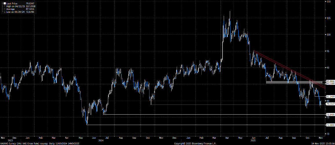 Mayıs ayından bu yana düşüş eğiliminde olan rasyoda bu hafta, gümüşün altına kıyasla daha güçlü toparlanmasıyla 81,21 seviyesi de kırıldı. Bu baskınlığın sürmesi durumunda 75,84 seviyesi gündeme gelebilir. Gümüş lehine baskının zayıflaması halinde ise rasyonun 81,24 seviyesine doğru toparlanması mümkün. Mevcut trendin değişmesi için ise ilk etapta alçalan trend bölgesinin geçilmesi gerekiyor.