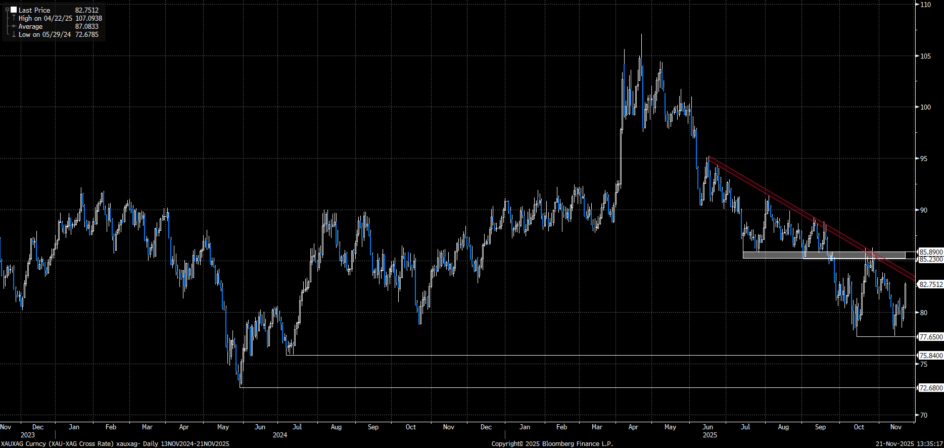 Bugün gümüşteki geri çekilme altına kıyasla daha sert olsa da rasyoda aşağı yönlü eğilim devam ediyor. Alçalan trend bölgesi ile 85,23–85,89 bandının altında kalındığı sürece 75,84 seviyesi gündemde kalmayı sürdürüyor. Alternatif senaryoda ise fiyatlamalar trend bölgesinin ve 85,23–85,89 bandının üzerine taşınıp burada kalıcılık sağlarsa, gümüşün altına göre daha güçlü seyrettiği dönemin sona erdiğine işaret eden bir görünüm ortaya çıkabilir.