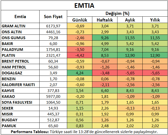 Ons altın rekor seviyelere yaklaşan maratonu ardından hafta ortasında kar satışına maruz kaldı. Hafta ortasından itibaren yoğunlaşan veri akışı olası etkileri nedeniyle yakından izlenecek. Gümüşte düşüş 2%’yi geçti.