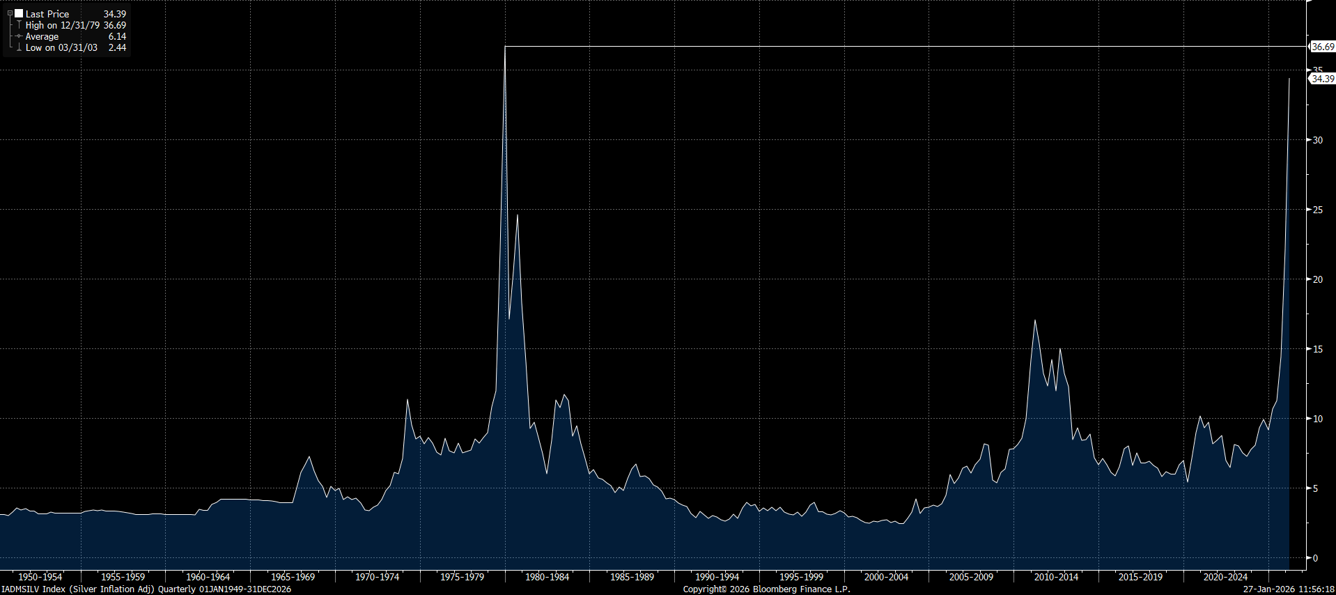 Enflasyondan arındırılmış gümüş fiyatları tarihi zirve bölgesine yaklaşmış durumda. Yükseliş eğilimi devam etse de, bu seviyelerde risk-getiri dengesinin daha dikkatli değerlendirilmesi gerektiğini düşünüyoruz.