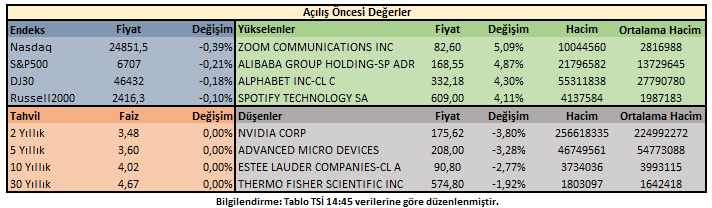 Piyasa Açılışı Öncesi Öne Çıkan Gelişmeler