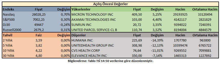Medicare ve Medicaid Hizmetleri Merkezleri'nin (CMS) 2027 için Medicare Advantage planlarına yapılan ödemelerde ortalama %0,09 artış önermesinin ardından; Humana (-14,39%), UnitedHealth (-12,13%), CVS Health (-11,01%) ve Elevance Health (-7,14%) gibi sağlık sigorta şirketlerinin hisse fiyatları piyasa açılışı öncesi işlemlerde gerileme gösteriyor.