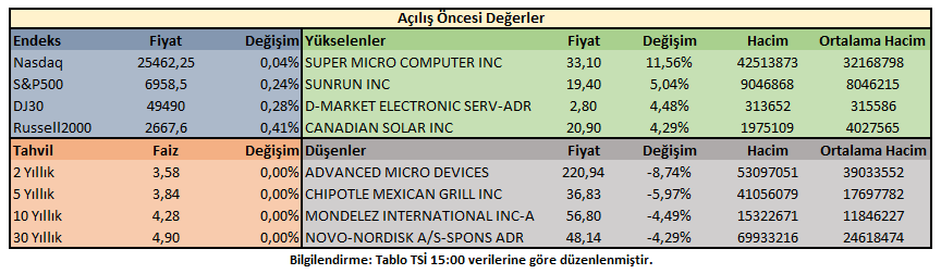 ABD 10 yıllık tahvil faizi %4,28 oranında hareket ederken, hisse senedi endeksleri DJ30 haricinde sınırlı pozitif bölgede fiyatlanıyor.