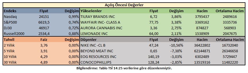 ABD 10 yıllık tahvil faizi %4,28 oranına gerilerken, hisse senedi endeksleri NASDAQ100 öncülüğünde yükseliş gösteriyor.
