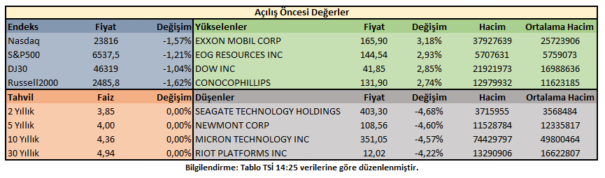 Enerji fiyatlarındaki yükseliş aynı zamanda risk alma iştahını baskılarken, depolama çözümleri sunan şirket hisseleri üzerinde baskıya neden oluyor. Seagate Technology Holdings (-4,68%) ve Micron Technology (-4,57%) gerileme gösterenler arasında yer alıyor.