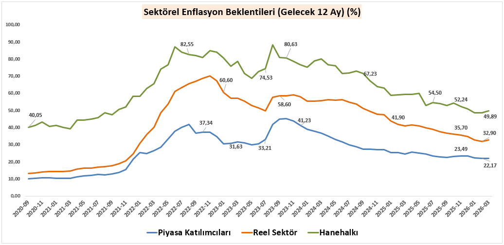 ** Günün ilk yarısında Sektörel Enflasyon Beklentileri açıklandı. Mart verilerine bakıldığında, Piyasa katılımcılarının 12 ay sonrası enflasyon beklentisi Şubat ayında %22,10 seviyesindeyken Şubat’ta %22,17’ye sınırlı bir yükselme gösteriyor. Reel sektör tarafında da benzer bir görünüm var. Şubat ayında %32,00 olan beklenti Mart’ta %32,90’a yükselmiş durumda. Hanehalkı cephesinde ise Mart ayında beklentinin %59,25 seviyesine gerçekleştirdiği yükseliş dikkat çekiyor. Bu durum, enflasyon algısının toplum genelinde hala yüksek ve yapışkan olduğunu ortaya koyuyor. Genel çerçevede, Dezenflasyon süreci devam ediyor fakat beklentilerin tam anlamıyla çıpalanması için zamana ve politika kararlılığının sürmesine ihtiyaç olduğu söylenebilir.