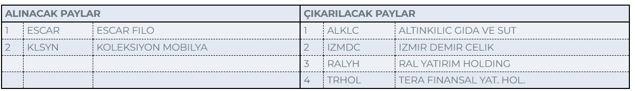 BIST Piyasa Değeri Ağırlıklı Pay Endeksleri Kural Seti uyarınca Borsa İstanbul Genel Müdürlüğünce; BIST Geri Alım Endeksi kapsamında 2025 yılı Kasım ayı için (07/11/2025-04/12/2025) değişikliklerin yapılmasına karar verilmiştir.