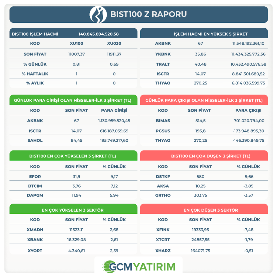 Bilgilendirme: Yukarıda yer verdiğimiz tabloda finansal varlıklara yönelik yüzdesel değişimler yer almaktadır. Bir gün önceki kapanış fiyatları baz alınarak kaydettiğimiz bu tablo, yurtiçi piyasaların açılışı ile birlikte değişmesi kaçınılmazdır. Bu sebeple de ilgili tablonun sizlere önemli varlıkların değişimlerini kolay bir şekilde bir arada görülmesi amacıyla hazırlandığı unutulmamalıdır.