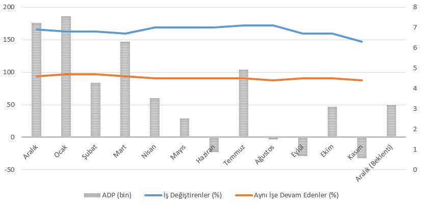 Piyasa beklentisi özel sektör istihdamının Aralık’ta 50 bin artabileceği şeklinde.