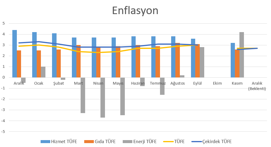Piyasa beklentisi Aralık’ta TÜFE’nin aylık 0,3%, yıllık 2,7% düzeyinde oluşacağı, buna çekirdek TÜFE’nin aylık 0,3%, yıllık 2,7% ile eşlik edeceği yönünde.