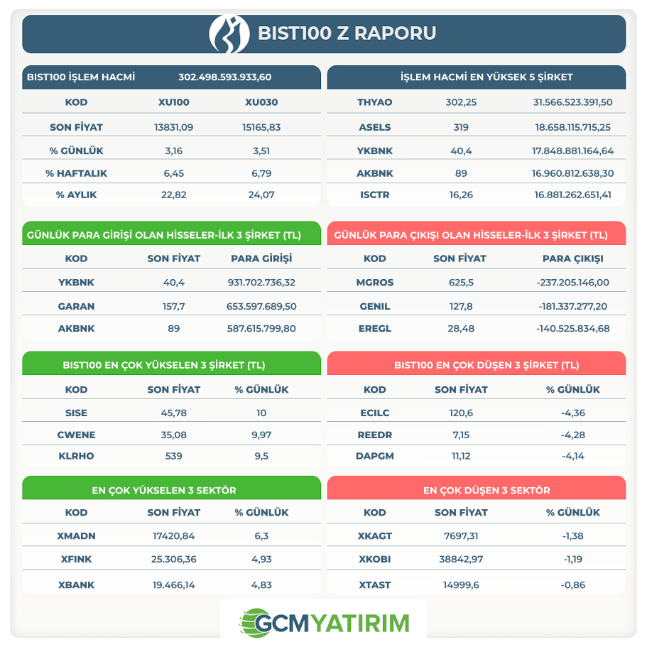 Bilgilendirme: Yukarıda yer verdiğimiz tabloda finansal varlıklara yönelik yüzdesel değişimler yer almaktadır. Bir gün önceki kapanış fiyatları baz alınarak kaydettiğimiz bu tablo, yurtiçi piyasaların açılışı ile birlikte değişmesi kaçınılmazdır. Bu sebeple de ilgili tablonun sizlere önemli varlıkların değişimlerini kolay bir şekilde bir arada görülmesi amacıyla hazırlandığı unutulmamalıdır.