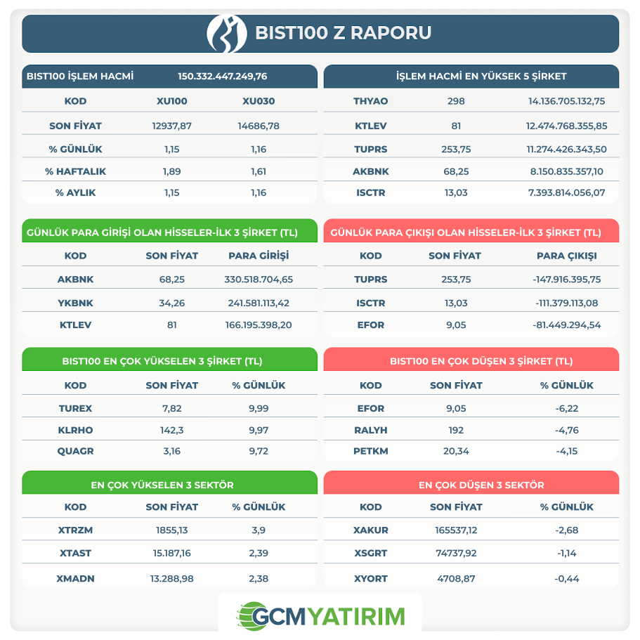 Bilgilendirme: Yukarıda yer verdiğimiz tabloda finansal varlıklara yönelik yüzdesel değişimler yer almaktadır. Bir gün önceki kapanış fiyatları baz alınarak kaydettiğimiz bu tablo, yurtiçi piyasaların açılışı ile birlikte değişmesi kaçınılmazdır. Bu sebeple de ilgili tablonun sizlere önemli varlıkların değişimlerini kolay bir şekilde bir arada görülmesi amacıyla hazırlandığı unutulmamalıdır.