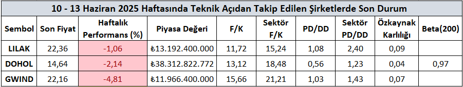 Yeni hafta dinamiklerinde teknik göstergelerle uyumlu çalışabileceğini düşündüğümüz şirketlere yönelik genel düşüncelerimizi haftalık bülten çerçevesinde ayrıntılı bir şekilde sizlere teknik analiz bölümünde paylaşacağız. Bu şirketlere yönelik genel bilgilere yukarıdaki tablodan ulaşabilirsiniz.