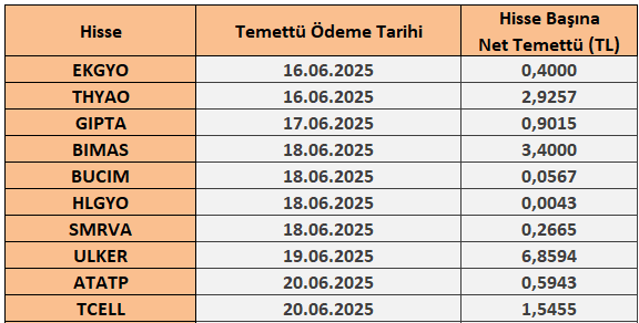 Yurt içi piyasalarda ise, Piyasa Katılımcıları Anketi, Cari İşlemler Dengesi, Perakende Satışlar, Merkezi Yönetim Bütçe Dengesi, Tarın ÜFE, Konut Satışları, Tüketici Güven Endeksi, Konut Fiyat Endeksi, Haftalık Para, Banka ve Menkul Kıymet İstatistikleri yer alacak. Haftanın en önemli gelişmesi olarak ise 19 Haziran Perşembe günü gerçekleşecek olan Para Politikası Kurulu toplantısı olacak.