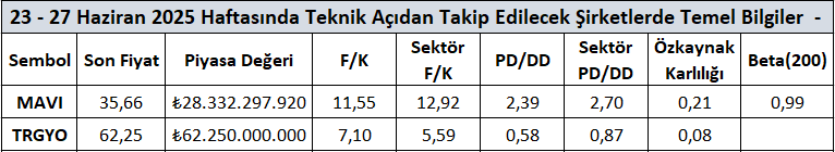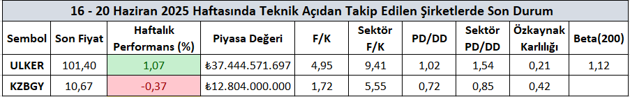 Yeni hafta dinamiklerinde teknik göstergelerle uyumlu çalışabileceğini düşündüğümüz şirketlere yönelik genel düşüncelerimizi haftalık bülten çerçevesinde ayrıntılı bir şekilde sizlere teknik analiz bölümünde paylaşacağız. Bu şirketlere yönelik genel bilgilere yukarıdaki tablodan ulaşabilirsiniz.