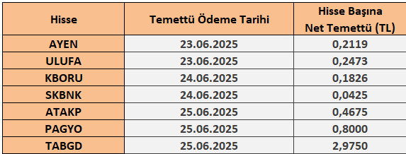 23 – 27 Haziran 2025 Haftası Temettü Takvimi