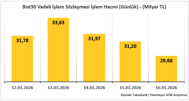 Endeks kontratının günlük hacim dağılımı incelendiğinde, haftanın en yüksek işlem hacmi 33,63 milyar TL ile salı günü, en düşük hacim ise 29,68 milyar TL ile cuma günü gerçekleşmiştir. Bu görünüm, haftanın ilk bölümünde görece daha istekli bir pozisyonlanma gözlenirken, hafta kapanışına doğru temkinli duruşun ön plana çıktığını göstermektedir.