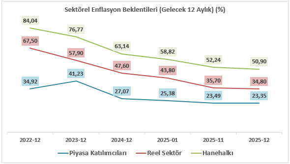 Hafta içerisinde yayımlanacak Sektörel Enflasyon Beklentileri verisinde, piyasa katılımcıları, reel sektör ve hanehalkı beklentileri arasındaki ayrışmanın seyri öne çıkacaktır. Son dönemde piyasa katılımcılarının beklentilerinde kademeli bir iyileşme izlenirken, reel sektör ve özellikle hanehalkı tarafında düşüş eğiliminin daha sınırlı kalması beklenebilir. Açıklanacak veriler, dezenflasyon sürecinde beklenti kanalının etkinliğini göstermesi açısından önem taşırken, sektörler arası farkın daralması para politikasının etkinliğine yönelik olumlu bir sinyal olarak değerlendirilebilir.