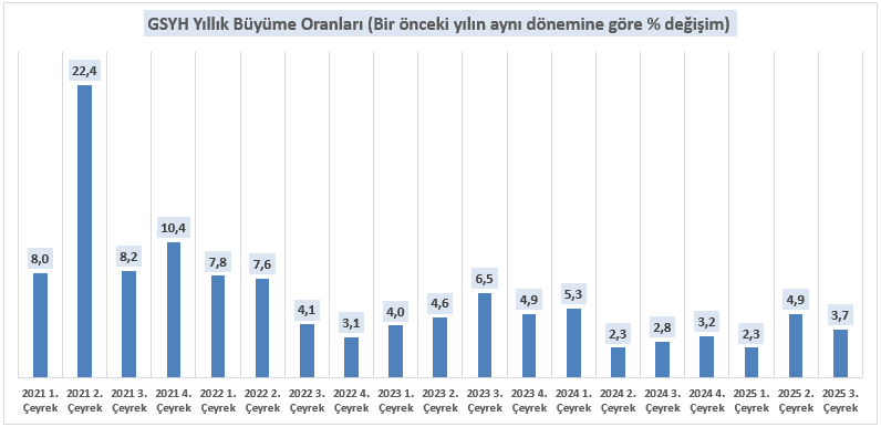 2025 yılı 4. çeyrek GSYH verisinin, yılın son dönemindeki ekonomik aktiviteye ilişkin önemli sinyaller vermesi beklenmektedir. Türkiye ekonomisi ikinci çeyrekte %4,8, üçüncü çeyrekte ise %3,7 büyüyerek kesintisiz büyüme performansını sürdürmüştür. Sıkı finansal koşullar iç talepte dengelenmeye işaret ederken, sanayi üretimindeki ivme kaybı ve kredi büyümesindeki yavaşlama iç talep katkısını sınırlamaktadır. Buna karşın ithalattaki zayıflama ve güçlü turizm gelirleri net ihracat kanalıyla büyümeyi destekleyebilir. Piyasa beklentilerine bakıldığında, 2025’in dördüncü çeyreğinde yıllık %3,7 çeyreklik ise %0,5 büyüme beklenmektedir. Açıklanacak GSYH verisiyle birlikte büyümenin kompozisyonu, iç-dış talep dengesi ve sektörel katkılar daha net izlenecek bu görünümün enflasyon ve faiz patikasıyla ilişkisi para politikası açısından belirleyici olacaktır.