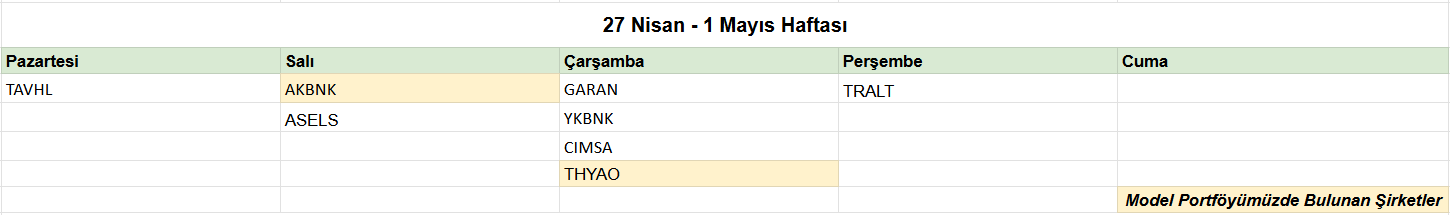 Makro veri tarafında ABD’de açıklanacak 1. çeyrek büyüme verisi, haftalık işsizlik maaşı başvuruları ve özellikle PCE verisi Fed’in değerlendirmeleri ile birlikte okunacak. Haftanın son işlem gününde açıklanacak ISM imalat PMI verisi ise ekonomik aktivitenin momentumuna ilişkin ek sinyal verecek.