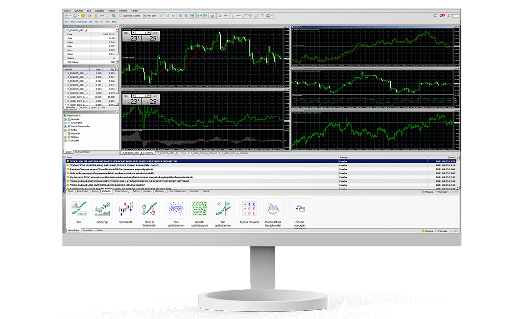 GCM Opsiyon MT5, opsiyon işlemlerini masaüstü bilgisayardan yapmak isteyen yatırımcılar için vazgeçilmez alım satım programıdır. Küresel düzeyde en çok kullanılan trade platformlarından biri olan MT5, tüm teknik analiz araçlarını bünyesinde barındırması sayesinde analistik yeteneklerinizi sonuna kadar kullanmanıza olanak tanır. Üstelik Meta Trader 5'in gelişmiş işlevleri ve kısayol tuşları ile işlemlerinizi hızlandırır, özelleştirir ve canlı grafikler ile piyasayı anlık olarak takip edebilirsiniz. Teknolojiyle finansın muhteşem birlikteliğini yaşamanız için!