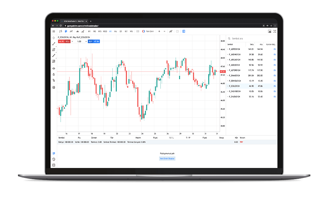 Gelişmiş hesap yönetimi modülü, veri takibi, grafikler ve diğer işlevsel araçlarıyla VİOP yatırımlarınızın vazgeçilmez uygulaması olan GCM MT5 WebTrader, artık yepyeni arayüzü ve kullanıcı deneyiminize fark katacak yeni özellikleri ile sizleri bekliyor.